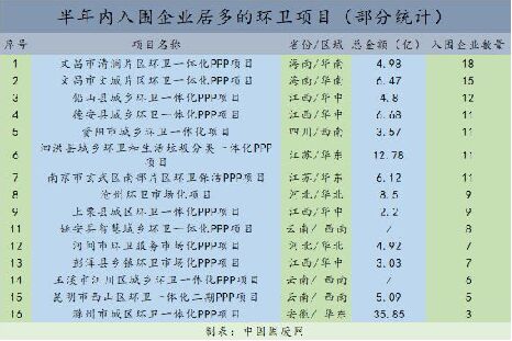 近几年,随着环卫市场化改革拉开序幕和环卫PPP项目崭露头角,环卫一跃成为环保新“蓝海”。近期,中国环联网统计发现,半年的时间左右,多个环卫项目引来多家企业竞相争夺。这侧面反映了企业拿标意愿的高低,环卫市场的热度和竞争程度由此也可窥探一二。 我国的环卫市场化时间最早起步于上个世纪80年代。2013年,《国务院办公厅关于政府向社会力量购买服务的指导意见》(国办发〔2013〕96号)发布,明确要求在公共服务领域更多利用社会力量,加大政府购买服务力度,各地环卫市场化力度明显加强。近几年,随着环卫市场化改革拉开序幕和环卫PPP项目崭露头角,环卫一跃成为环保新“蓝海”。 竞争白热化,环卫项目频现多企争夺战 半个月前,海南省文昌市清澜片区和文城片区两大环卫一体化PPP项目的资审结果中分别入围近20家企业,环卫项目多企争夺战引业内关注(详情请点击→ 火!海南两片区11亿环卫一体化项目引近20家企业角逐)。而在近期,根据公开披露的信息不完全统计,中国环联网发现,从2018年10月末到现在的半年时间左右,出现多个环卫项目引来多家企业竞相争夺的案例。 入围企业数居多的代表性环卫项目如下: