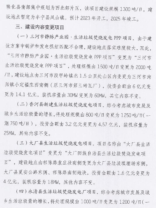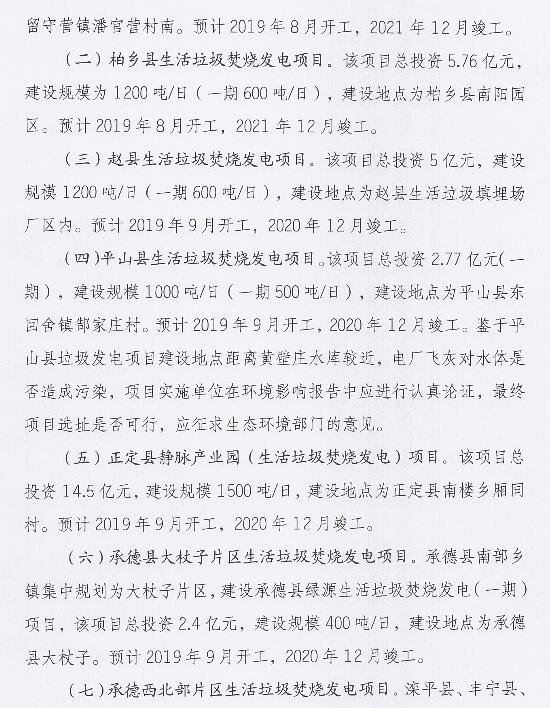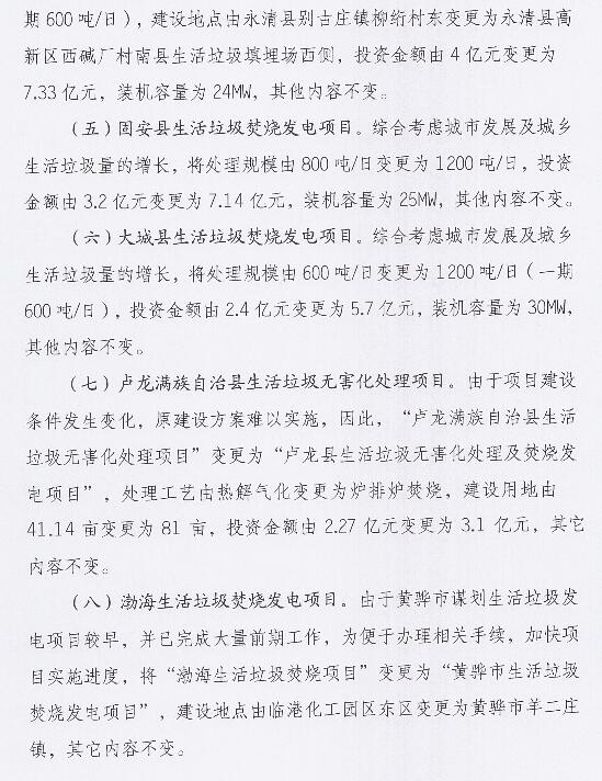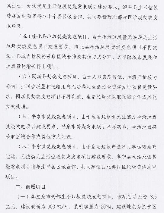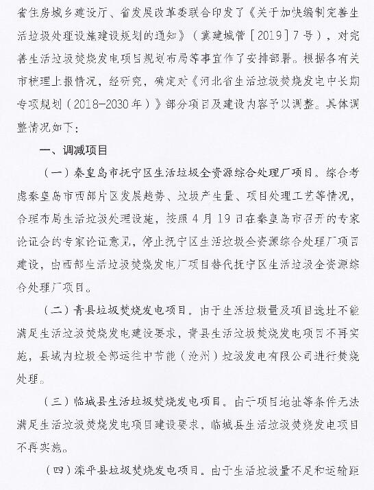 日前,河北省发展和改革委员会等4部门印发关于调整《河北省生活垃圾焚烧发电中长期专项规划(2018-2030年)》部分项目及建设内容的通知。其中增加垃圾焚烧发电项目七个,调减项目八个,建设内容变更项目九个。详情如下: