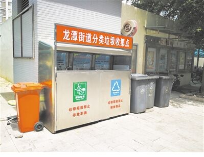 图为北京龙潭街道分类垃圾收集点 。