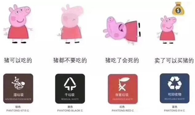 佩奇分类法 此时,被垃圾分类逼疯的群众们拨开一脑袋干湿垃圾的问号后,一个更大的问号开始在心中升腾:我们为什么非要垃圾分类??! 为什么非要垃圾分类呢?对于这个问题,要从“前因”与“后果”两个方面来回答! 说起“前因”,其实很清楚,我们需要保护环境,需要挽救我们的地球家园。面对垃圾围城,我们真的等不起了。 从前,面对被垃圾围困,只能从垃圾堆中寻找食物的北极熊时,我们无动于衷;看到误食塑料袋的鲸鱼死去的新闻,我们叹息过后转眼忘掉;看到鸟妈妈错把塑料当食物喂给宝宝的词条登上微博热搜,我们短暂关注后仍未行动……终于,那些被我们丢弃的垃圾,在经过生物链的自然的循环之后,出现在了人类的身体里。