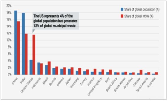 图表 1:20国集团国家人口和城市固体废物份额