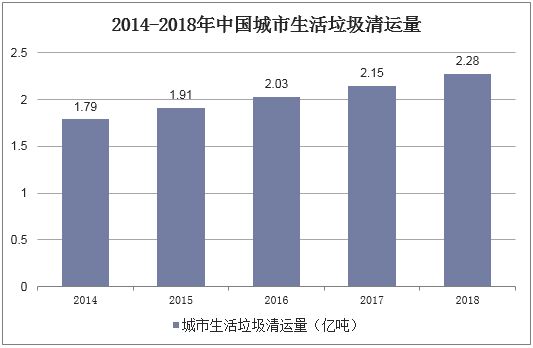 2014-2018年中国城市生活垃圾清运量