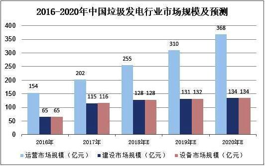 2016-2020年中国垃圾发电行业市场规模及预测。资料来源:华经情报网
