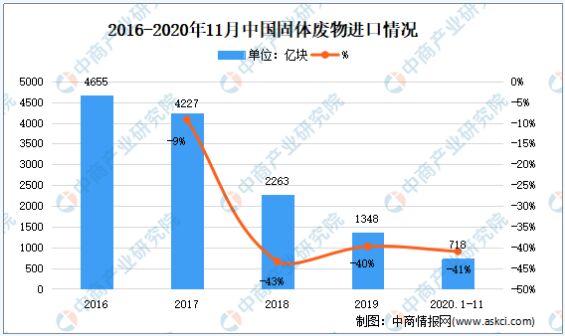 自2017年国务院印发《禁止洋垃圾入境推进固体废物进口管理制度改革实施方案》以来,经过三年多的不懈努力,改革取得明显成效。截至11月15日,今年全国固体废物进口总量为718万吨,同比减少41%。此前四部委联合发布的《关于全面禁止进口固体废物有关事项的公告》,已明确从2021年1月1日起,禁止以任何方式进口固体废物。全面禁止固废的时代即将来临。 固体废物进口量下降 数据显示,90年代以来我国固体废物进口量急剧增长。1995年至2016年间,中国每年进口的垃圾量从450万吨猛增至超过4800万吨。以2010年为例,全国进口固体废物4800多万吨,价值300多亿美元。而到了2012年,全年进口固体废物价值达到大约400亿美元。随着禁止进口固体废物的方案逐渐落实,固体废物进口量大幅度下降,截止11月15日,全国固体废物进口总量为718万吨,同比减少41%。