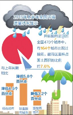 环保部27日通报2015年上半年全国环境质量状况显示,实施空气质量新标准的京津冀、长三角、珠三角区域及74个重点城市达标天数比例平均为68.0%,同比提高6.9个百分点。京津冀、长三角、珠三角地区空气质量较上年同期均有所好转。 在74个重点城市中,空气质量相对较差的后10位城市(从第74名到第65名)依次是保定、邢台、郑州、唐山、石家庄、衡水、济南、邯郸、沈阳和太原,空气质量相对较好的前10位城市(从第1名到第10名)依次是海口、拉萨、惠州、舟山、厦门、中山、珠海、深圳、昆明和福州。 环保部环境监测司司长罗毅介绍,2015年上半年,国家环境监测网继续开展环境空气、酸雨、地表水、集中式生活饮用水水源地、近岸海域、城市噪声等各环境要素监测。全国338个地级及以上城市共1436个国控点位开展了空气质量监测,470个城市(区、县)共1011个点位开展了酸雨监测,七大流域和西南、西北及浙闽片河流共956个国控断面(点位)开展了地表水水质监测,有325个地级及以上城市开展了集中式饮用水水源地水质监测,301个近岸海域监测点位开展了海水水质监测,291个城市开展了功能区声环境质量监测。 根据监测,按照《环境空气质量标准》(GB3095-2012),全国338个地级及以上城市达标天数比例在5.5%至100%之间,平均为72.7%。平均超标天数比例为27.3%,其中轻度污染比例为18.7%,中度污染占5.2%,重度污染占2.7%,严重污染占0.7%。首要污染物为PM2.5。