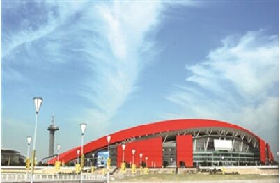 近日,南京多晴好天气,蓝天白云下南京奥体中心显得更美
